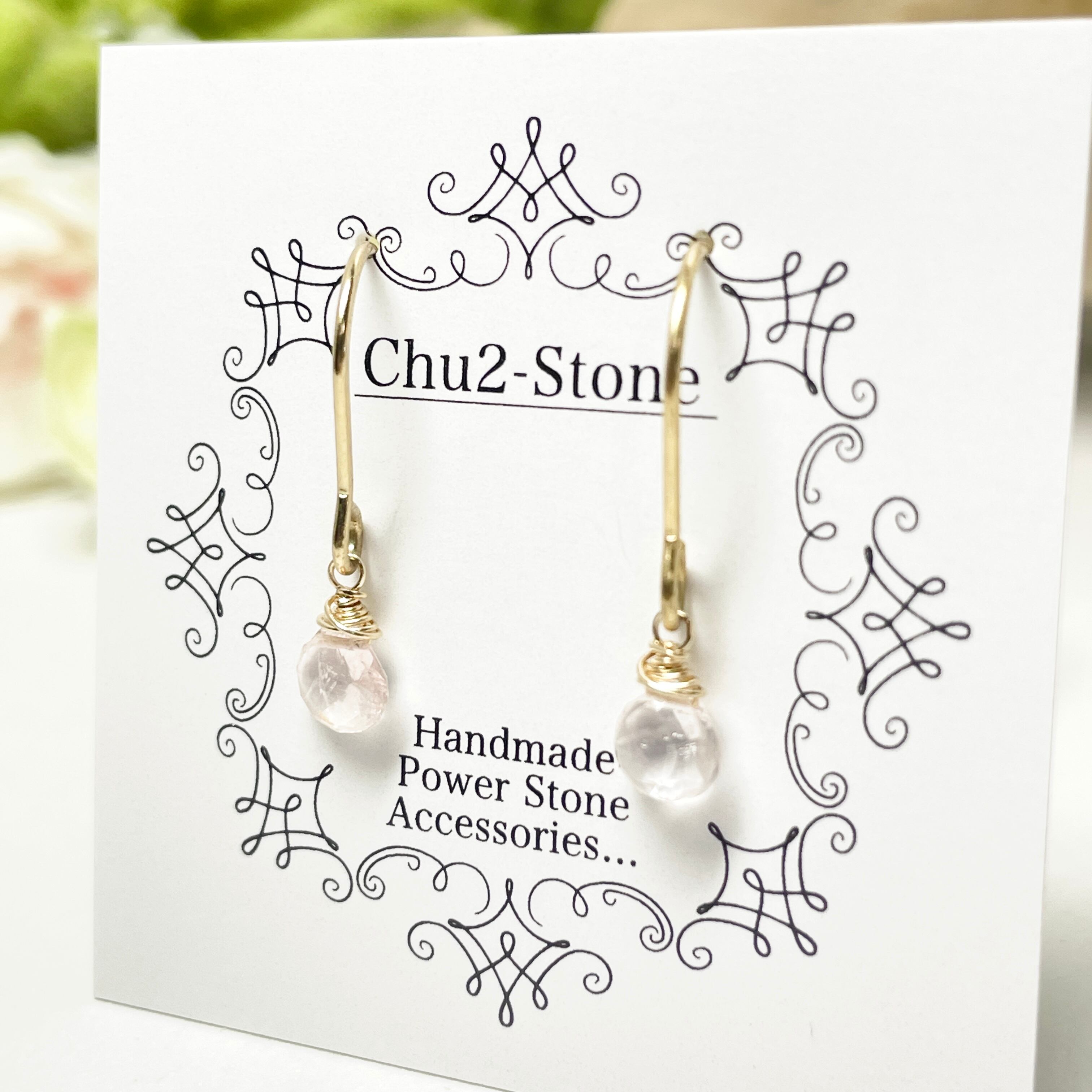 【宝石質】ローズクォーツ K18gf 一粒ピアス