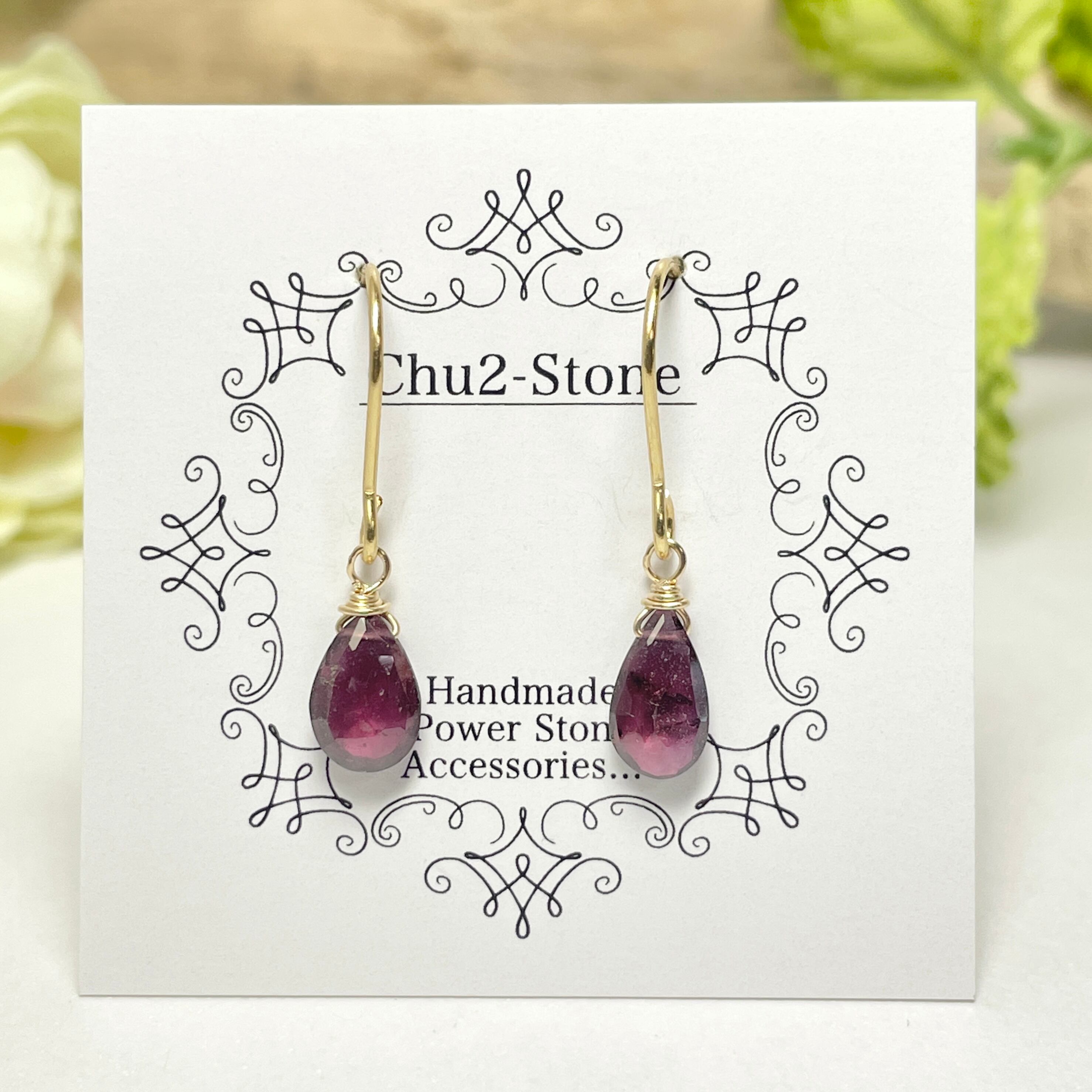 【宝石質】ガーネット K18gf 一粒ピアス