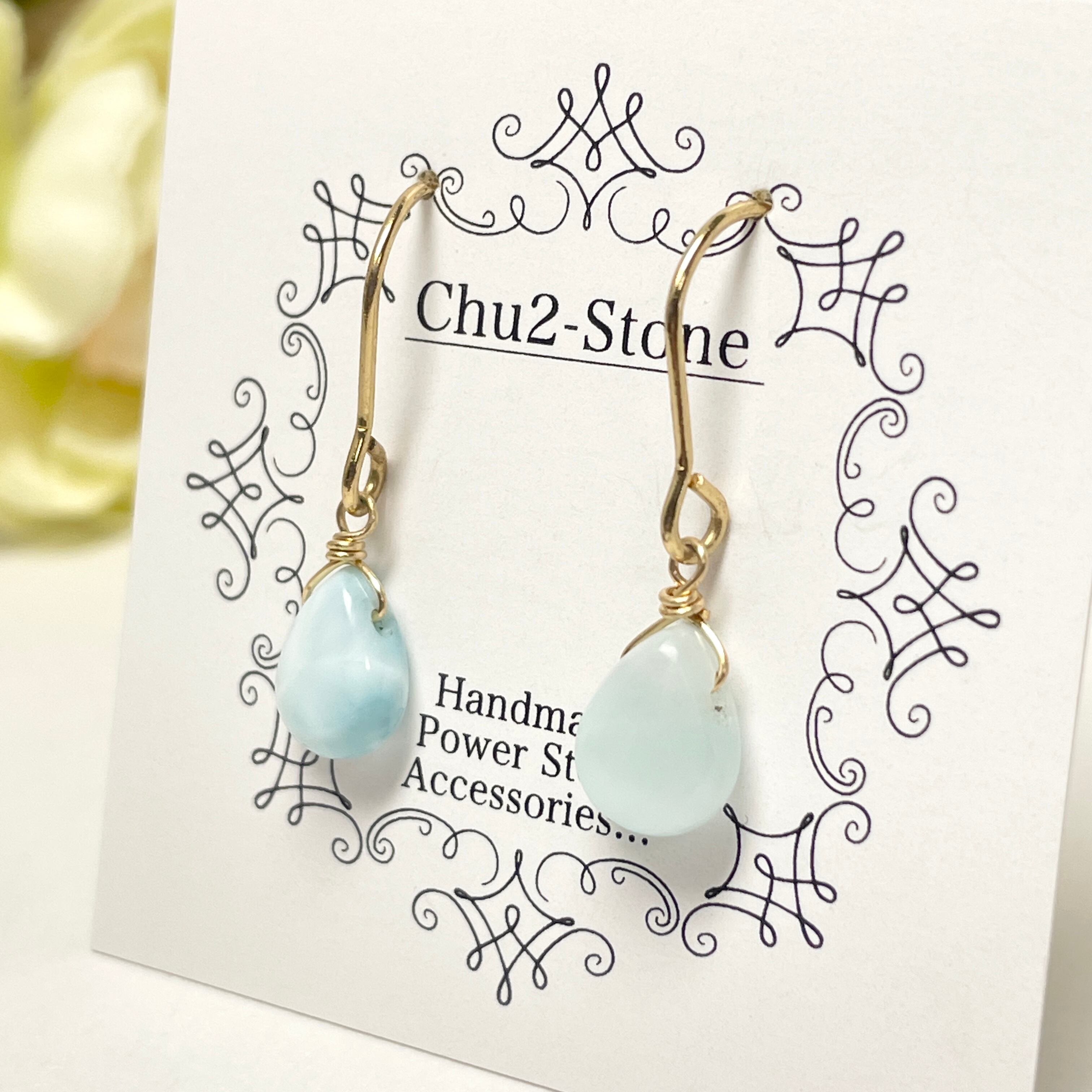 【宝石質】ラリマー K18gf 一粒ピアス