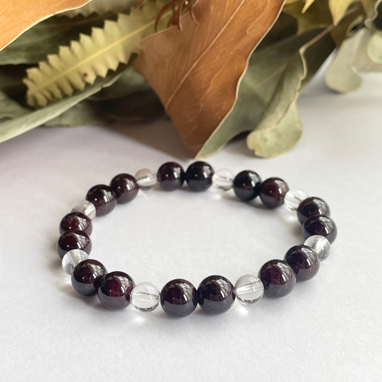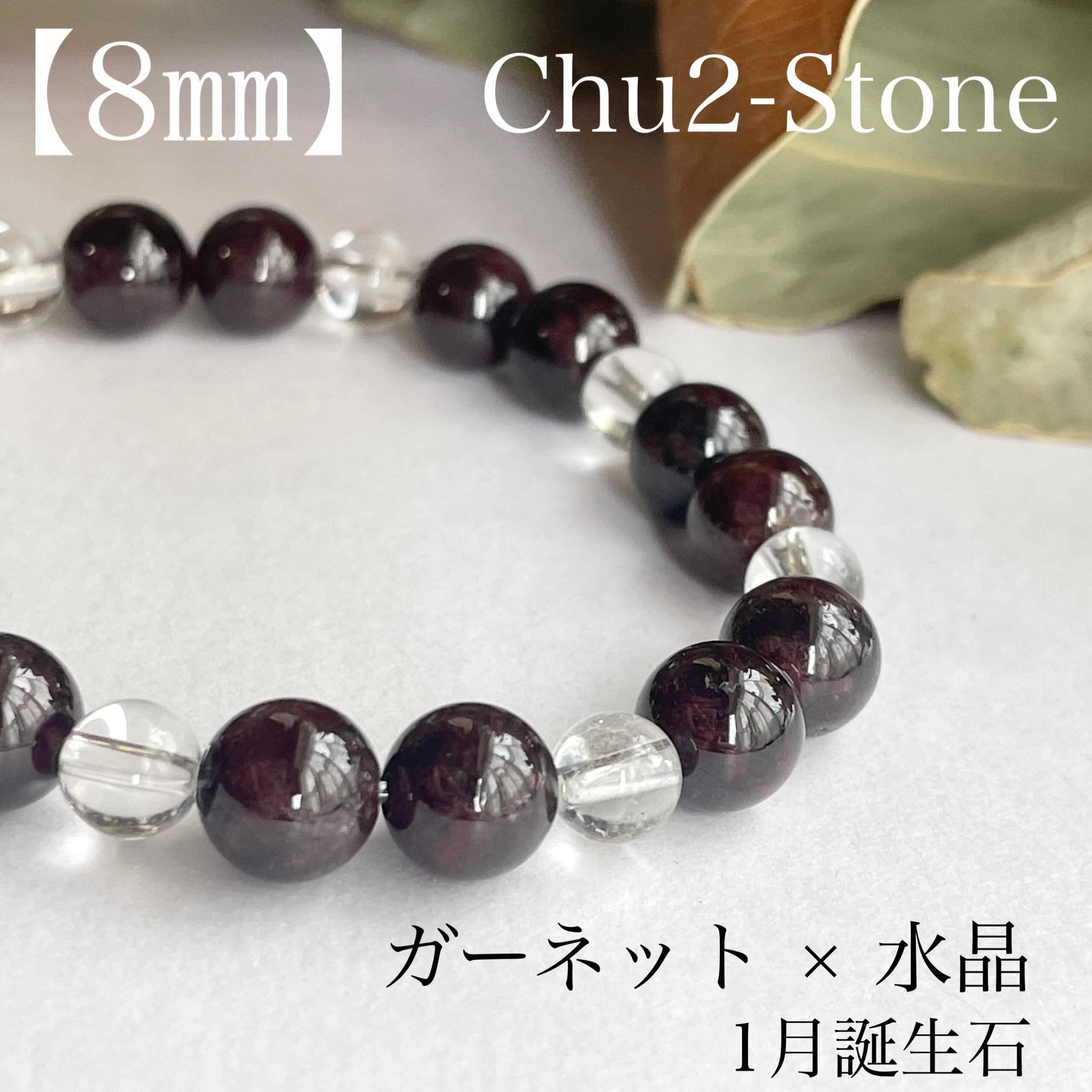 天然石ブレスレット ガーネット×水晶 1月誕生石 【8mm】