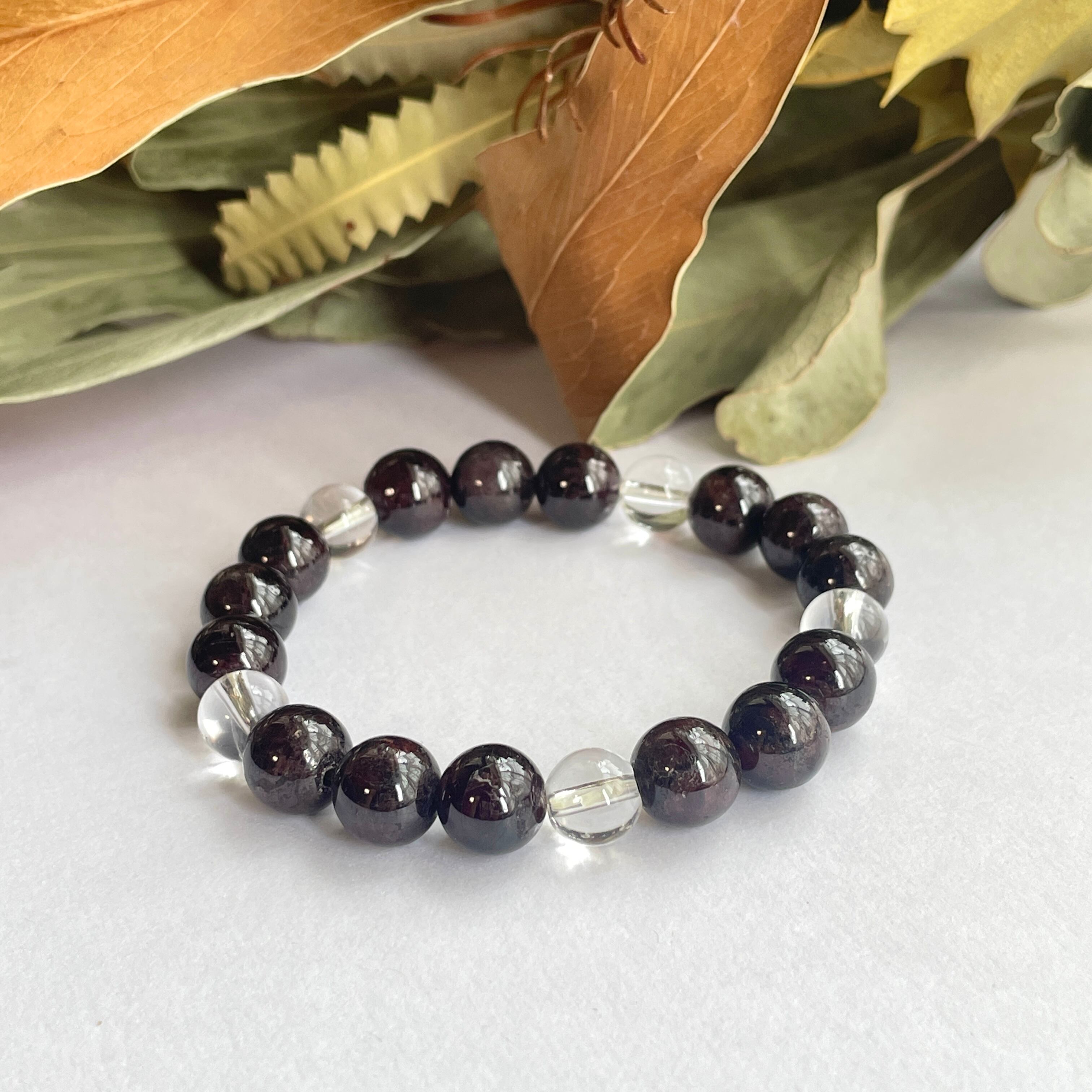 天然石ブレスレット ガーネット×水晶 1月誕生石 【10mm】