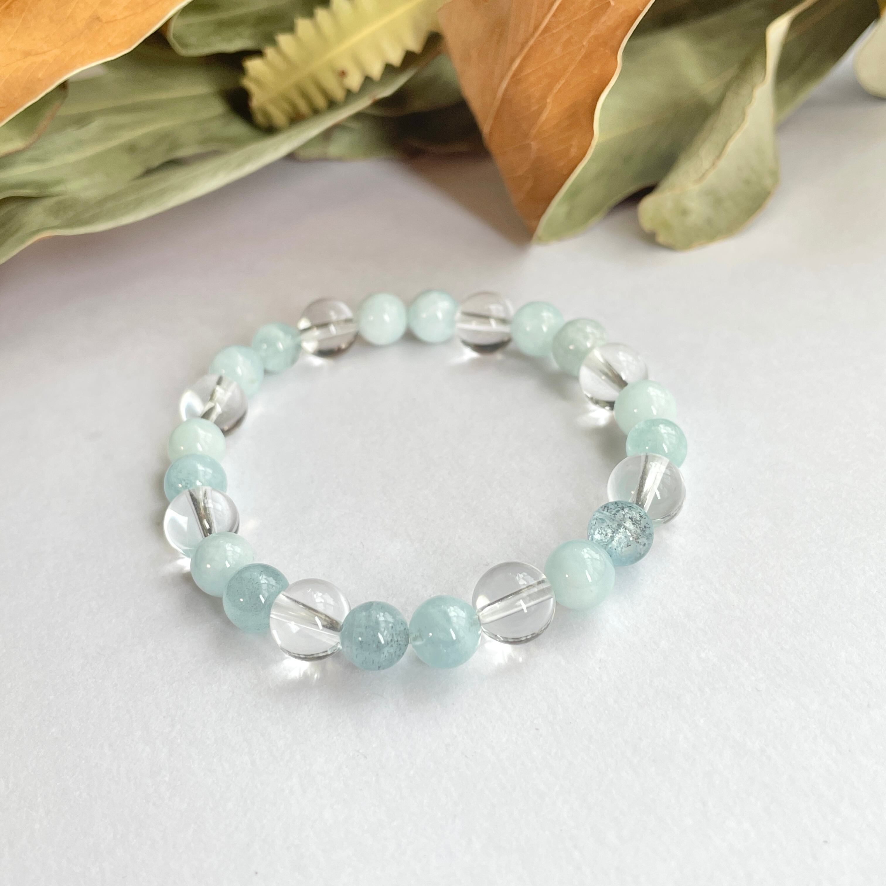 天然石ブレスレット アクアマリン×水晶 3月誕生石 【6mm】