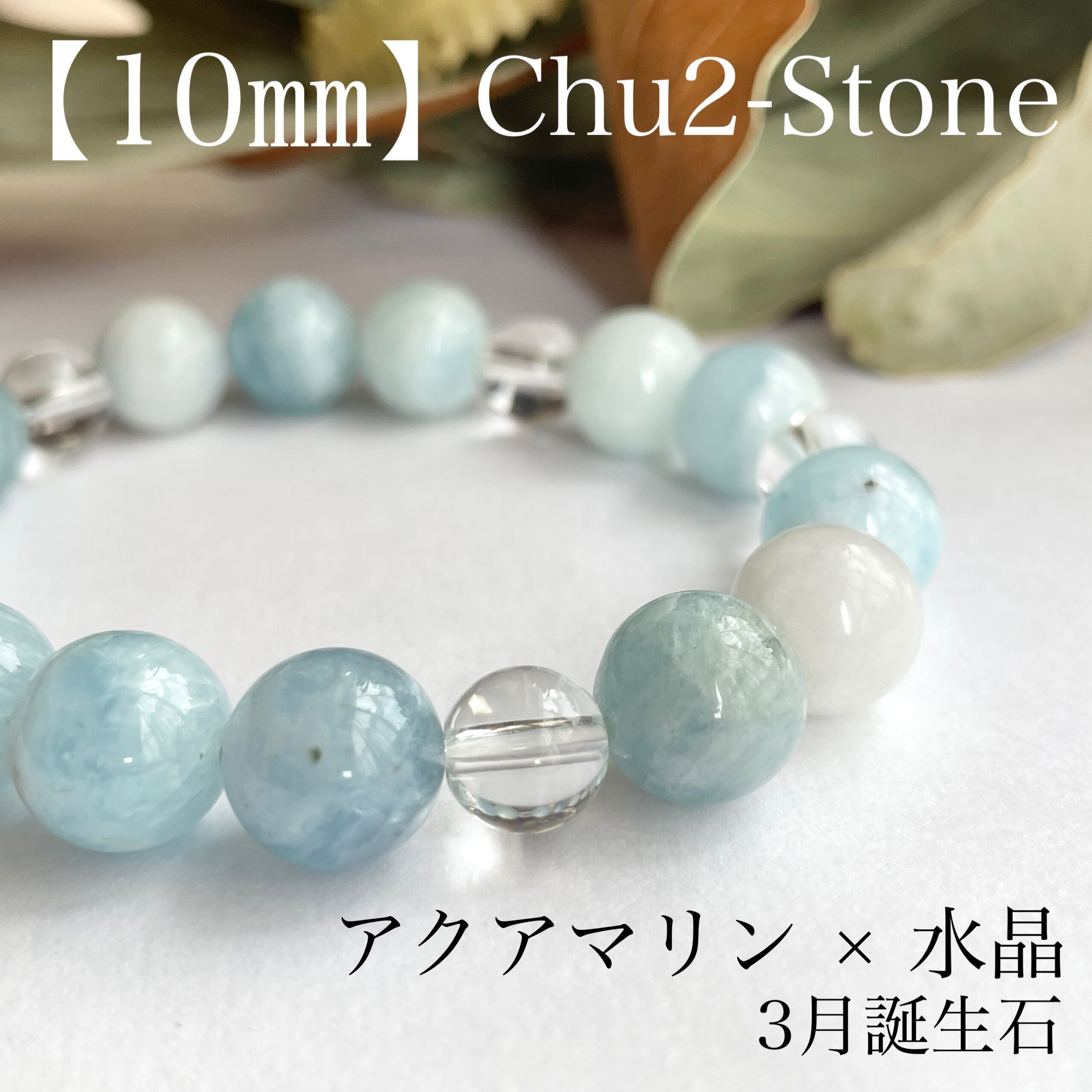 天然石ブレスレット アクアマリン×水晶 3月誕生石 【10mm】
