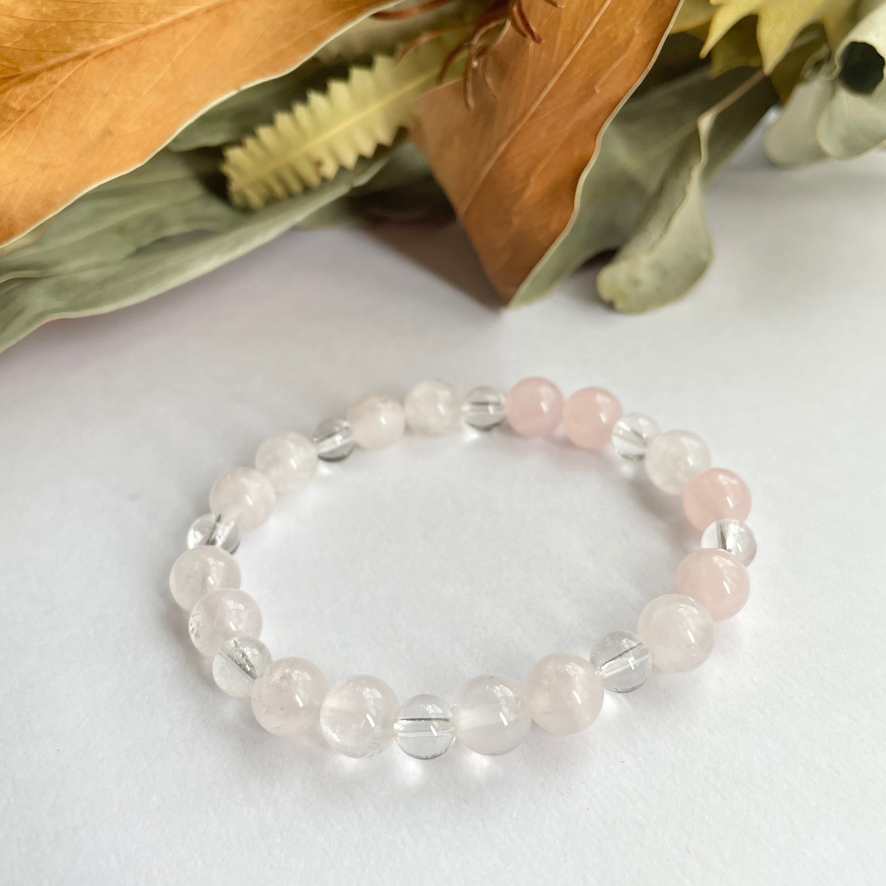 天然石ブレスレット ローズクォーツ×水晶 10月誕生石 【8mm】
