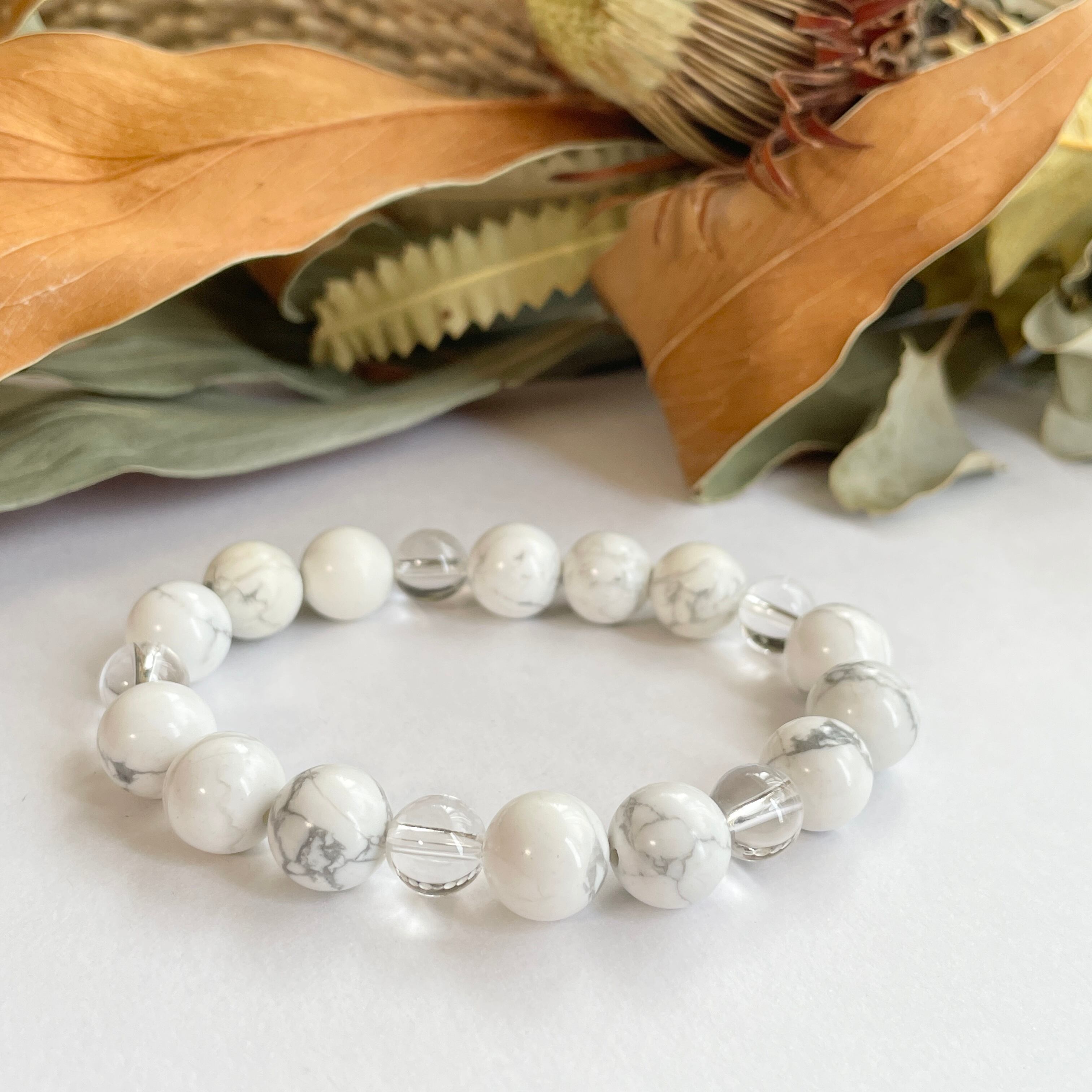 天然石ブレスレット ハウライト×水晶 【10mm】