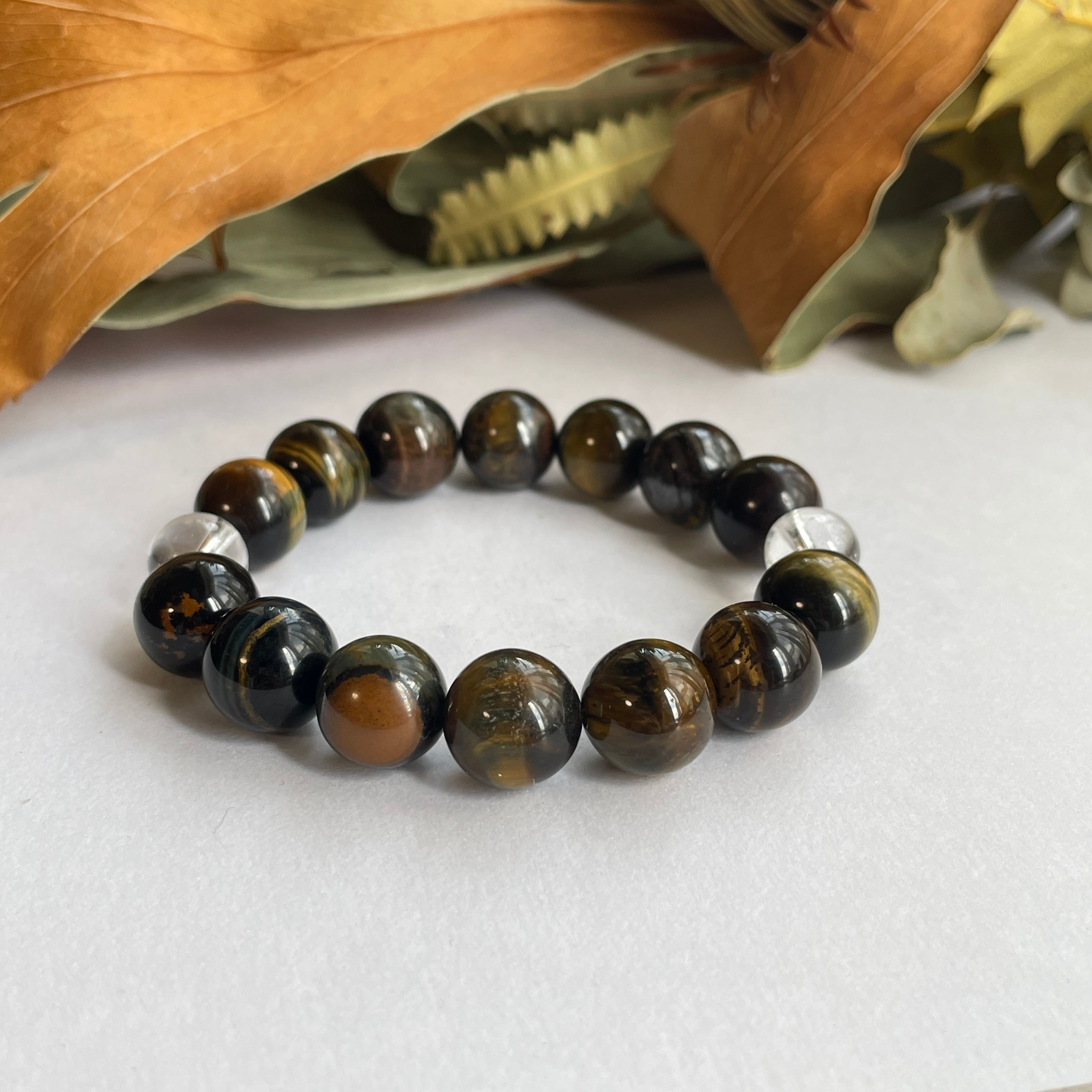 天然石ブレスレット ブルータイガーアイ×水晶 【12mm】