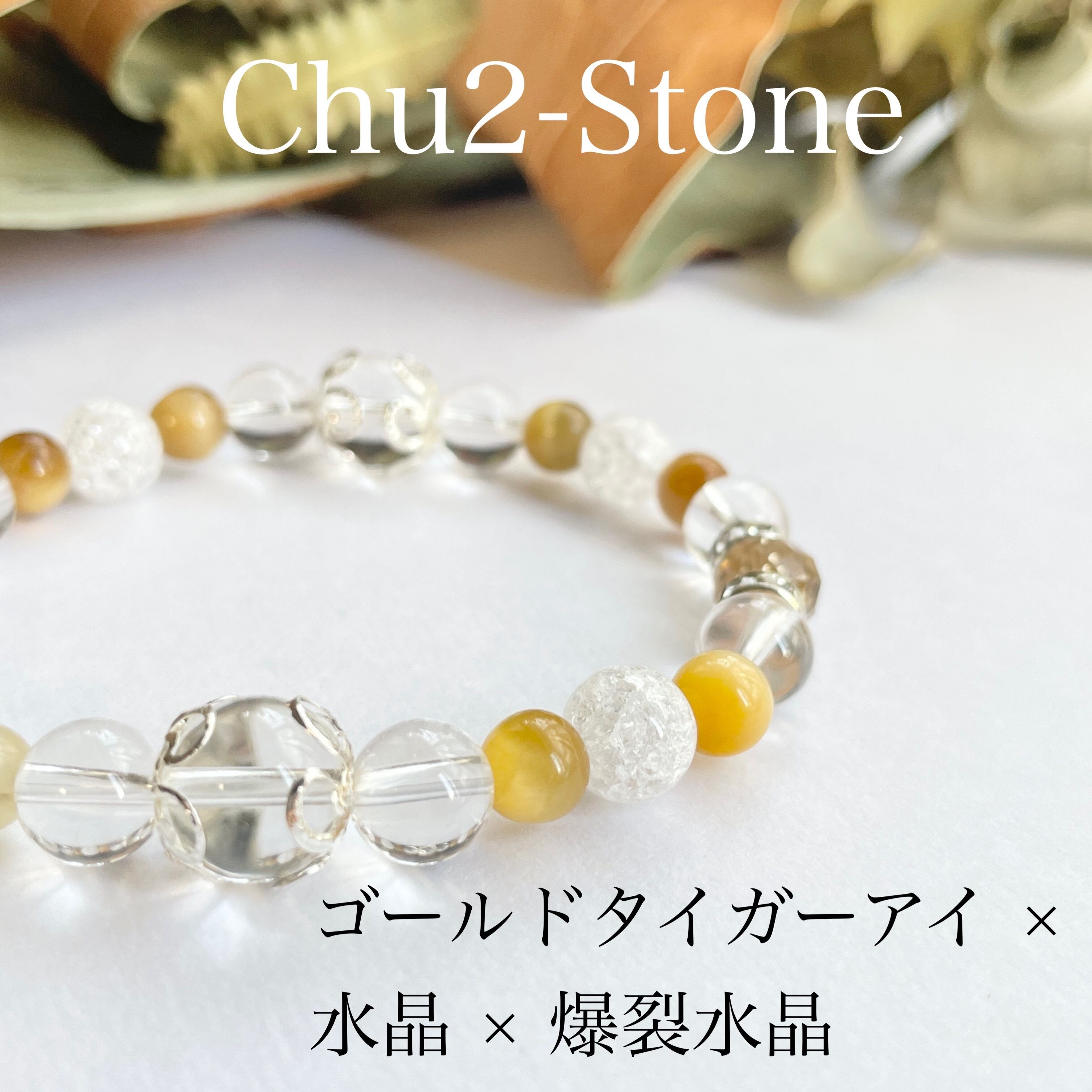 天然石デザインブレスレット ゴールドタイガーアイ×爆裂水晶×水晶 ②