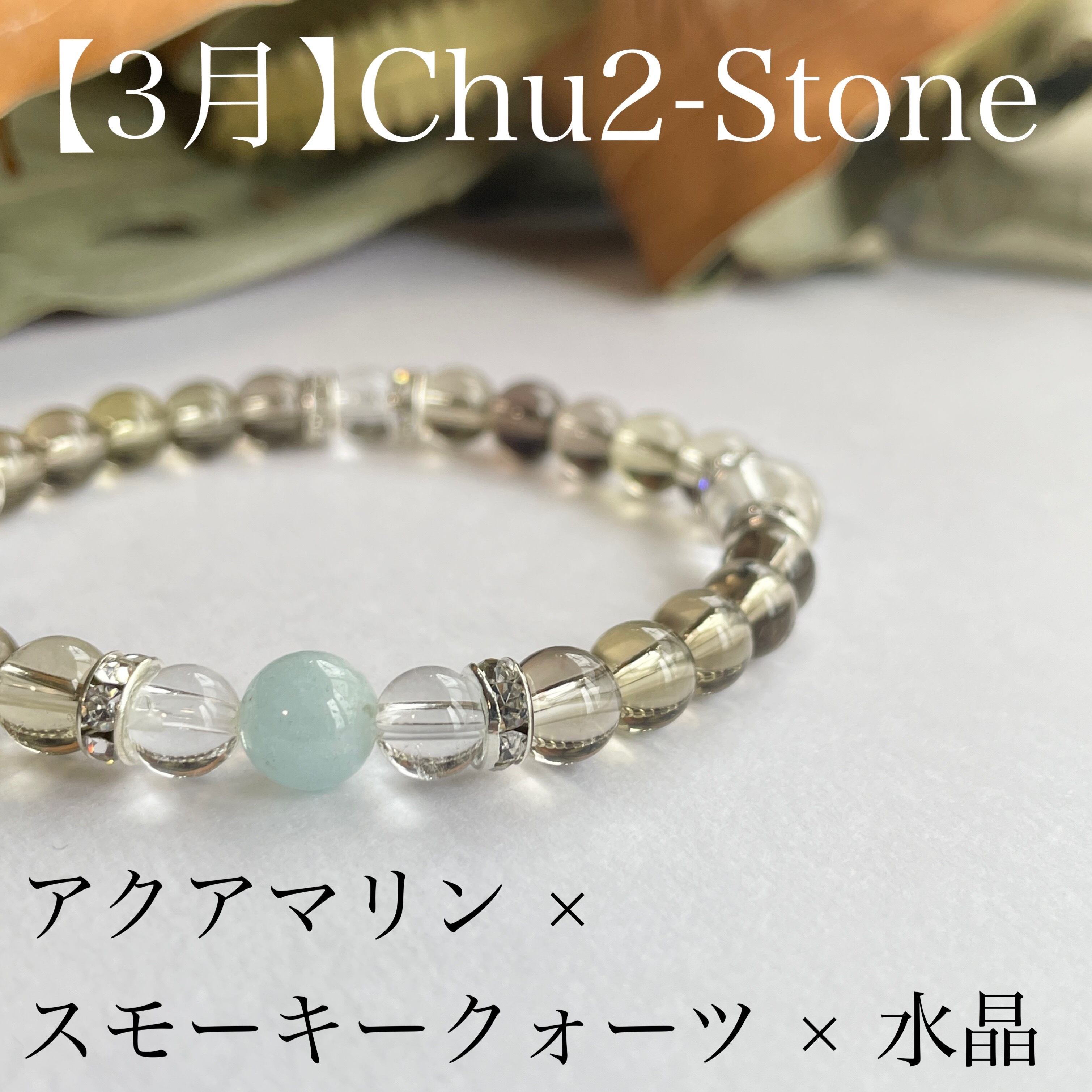 天然石・誕生石デザインブレスレット アクアマリン×水晶×スモーキークォーツ 3月誕生石