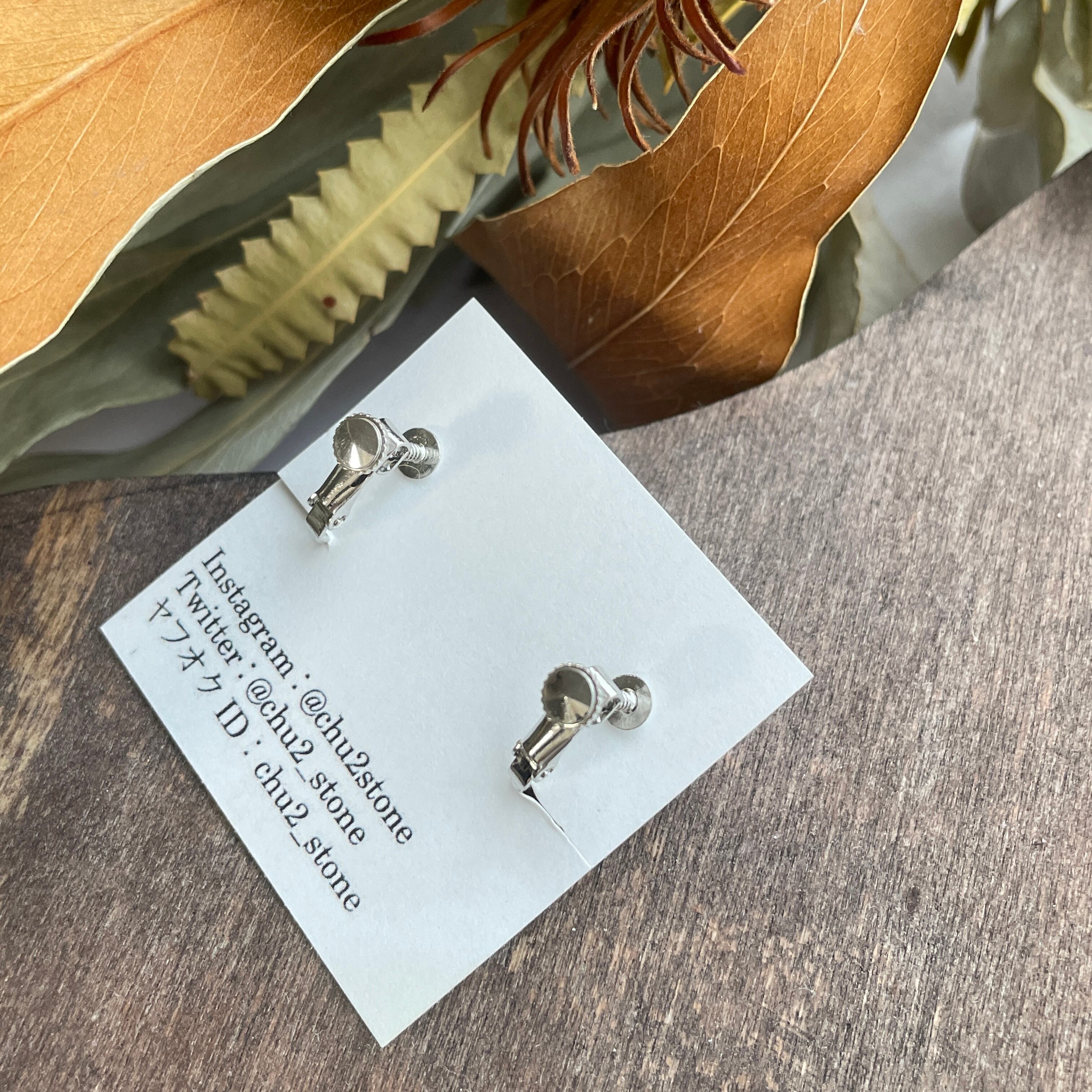 【天然石ビジューイヤリング】インカローズ×水晶 1点もの E−8