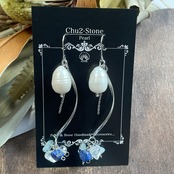 【真珠シリーズ】淡水真珠×アクアマリン×ラピスラズリ×水晶 1点もの サージカルステンレスピアス P-22