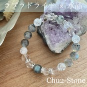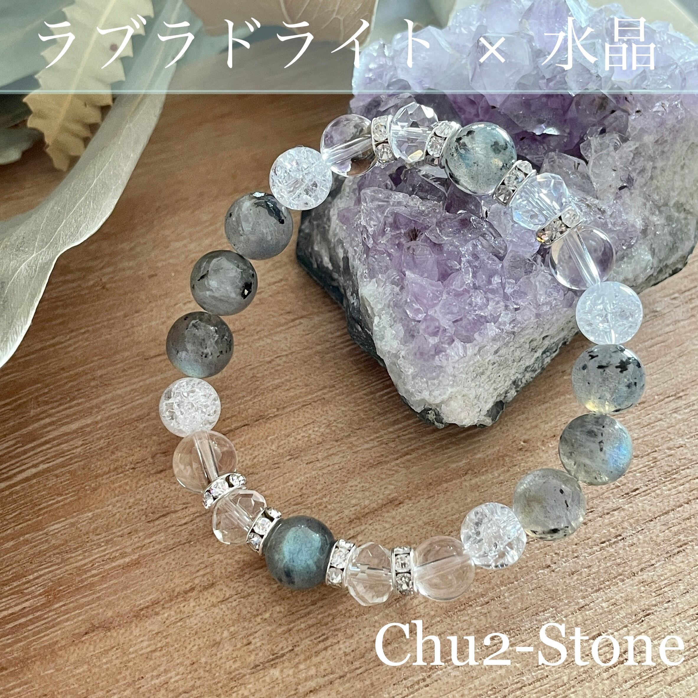 【天然石デザインブレスレット】 ラブラドライト×水晶×爆裂水晶 1点もの ①