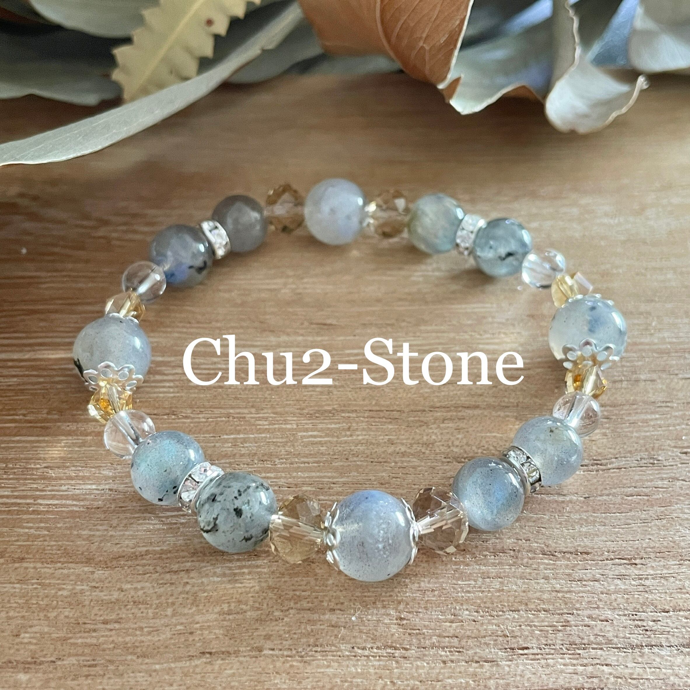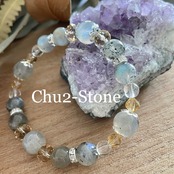 【天然石デザインブレスレット】 ラブラドライト×水晶 1点もの ②