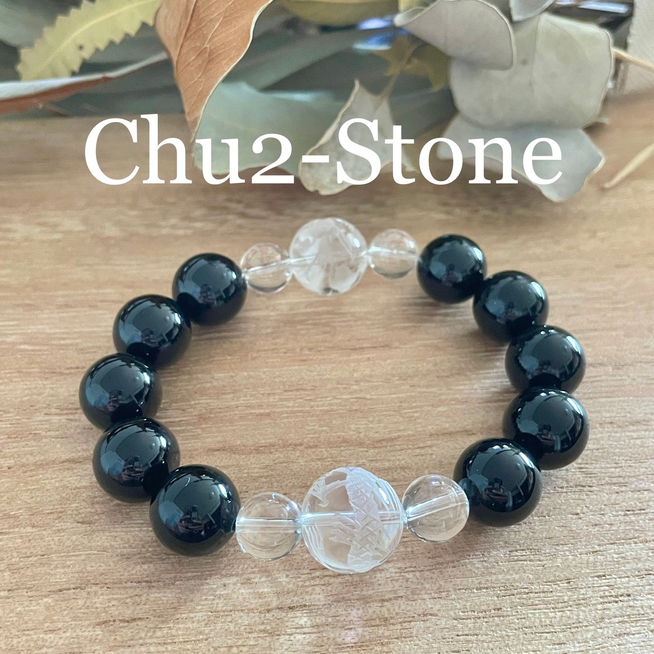 天然石デザインブレスレット オニキス×水晶×青龍 1点もの