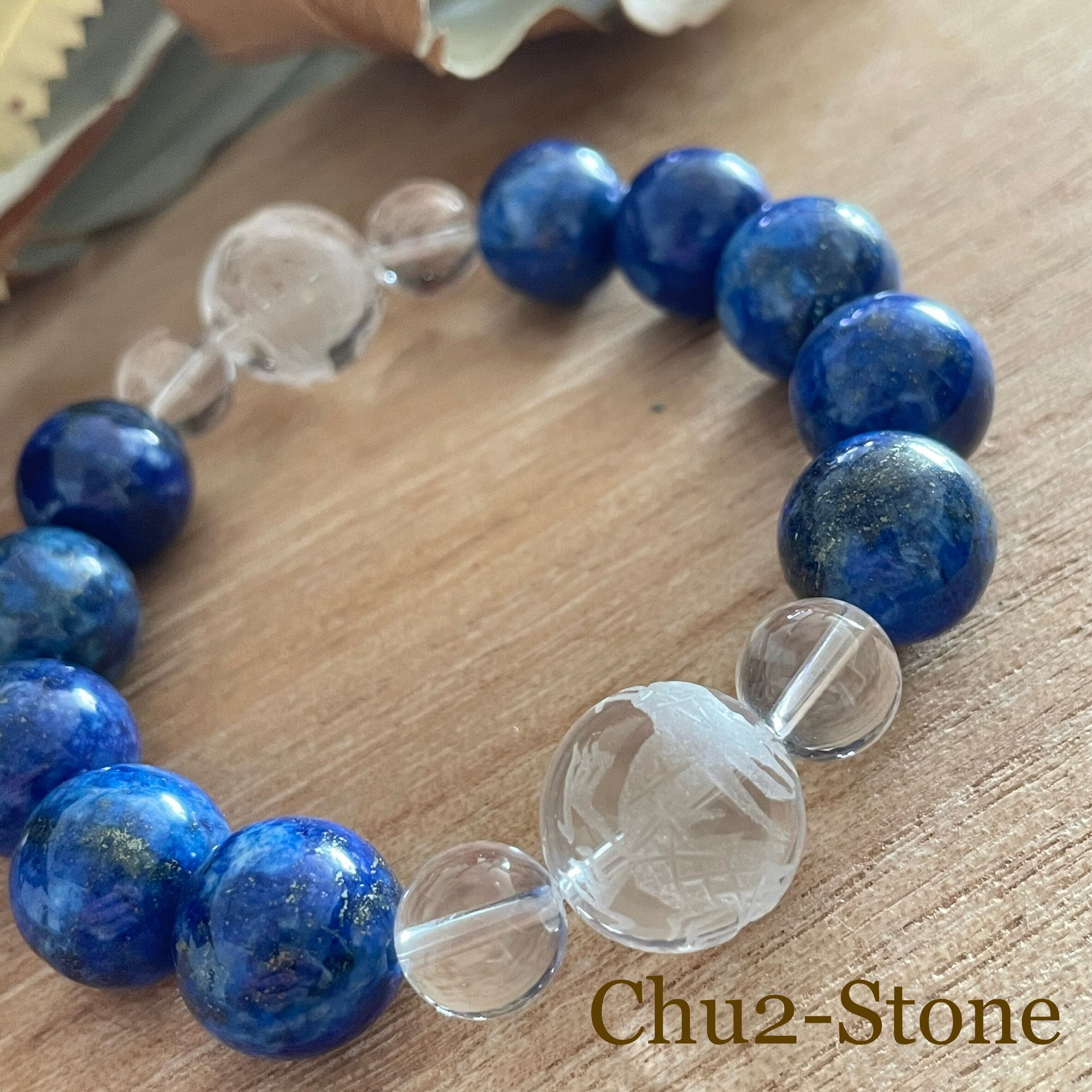 天然石デザインブレスレット ラピスラズリ×水晶×青龍 1点もの