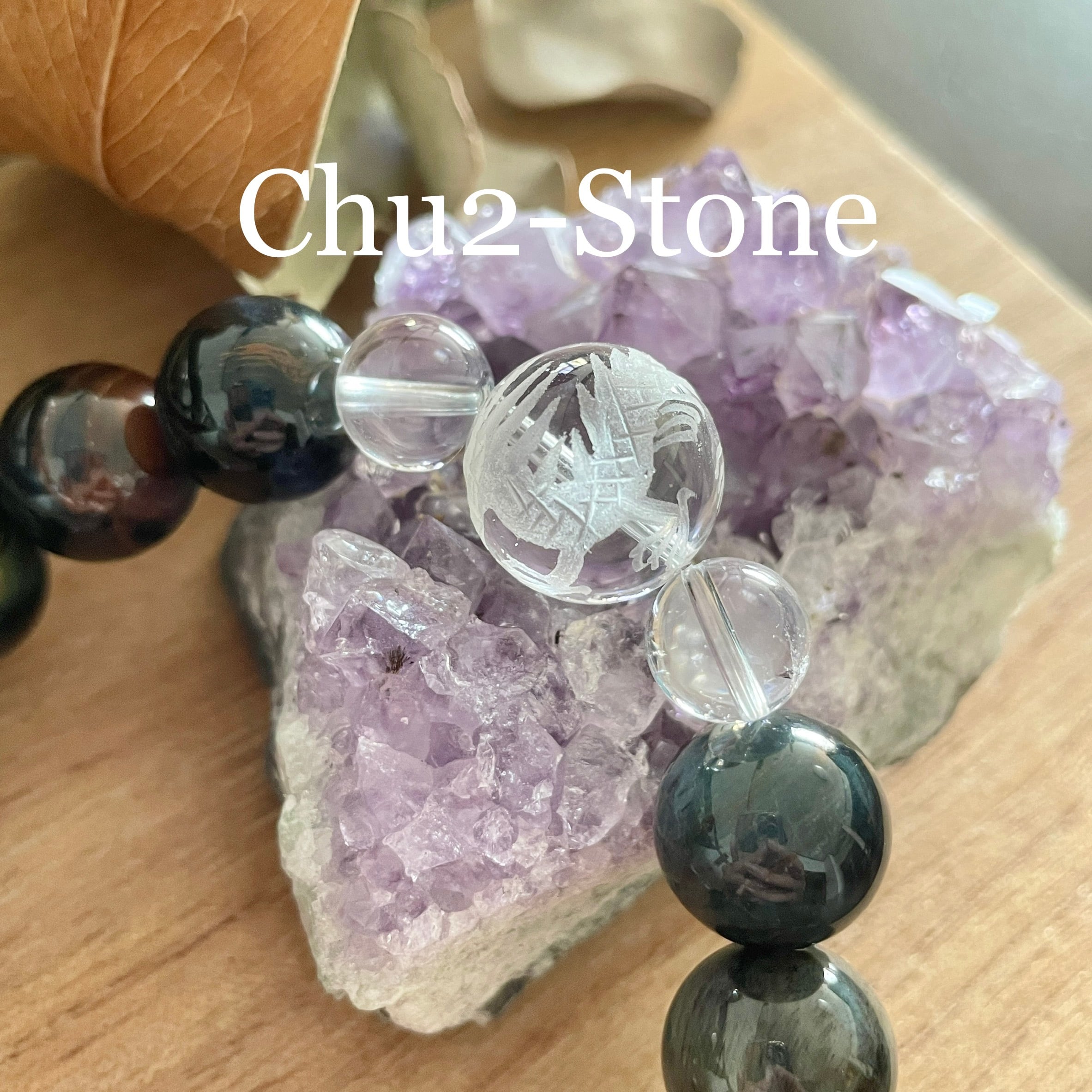 天然石デザインブレスレット ブルータイガーアイ×水晶×青龍 1点もの