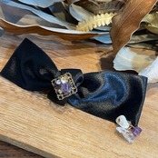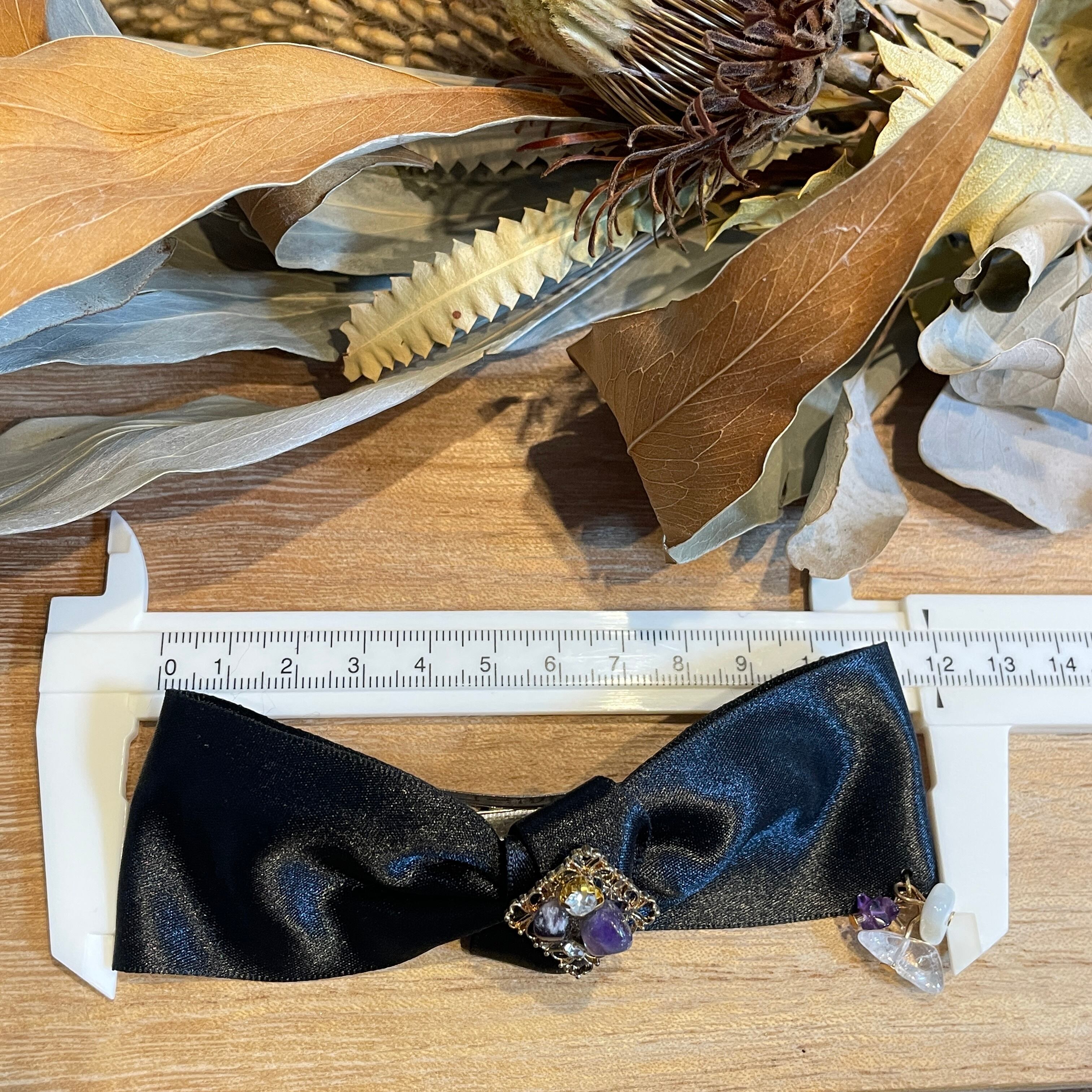天然石リボンバレッタ アメジスト×マザーオブパール×水晶 H-3