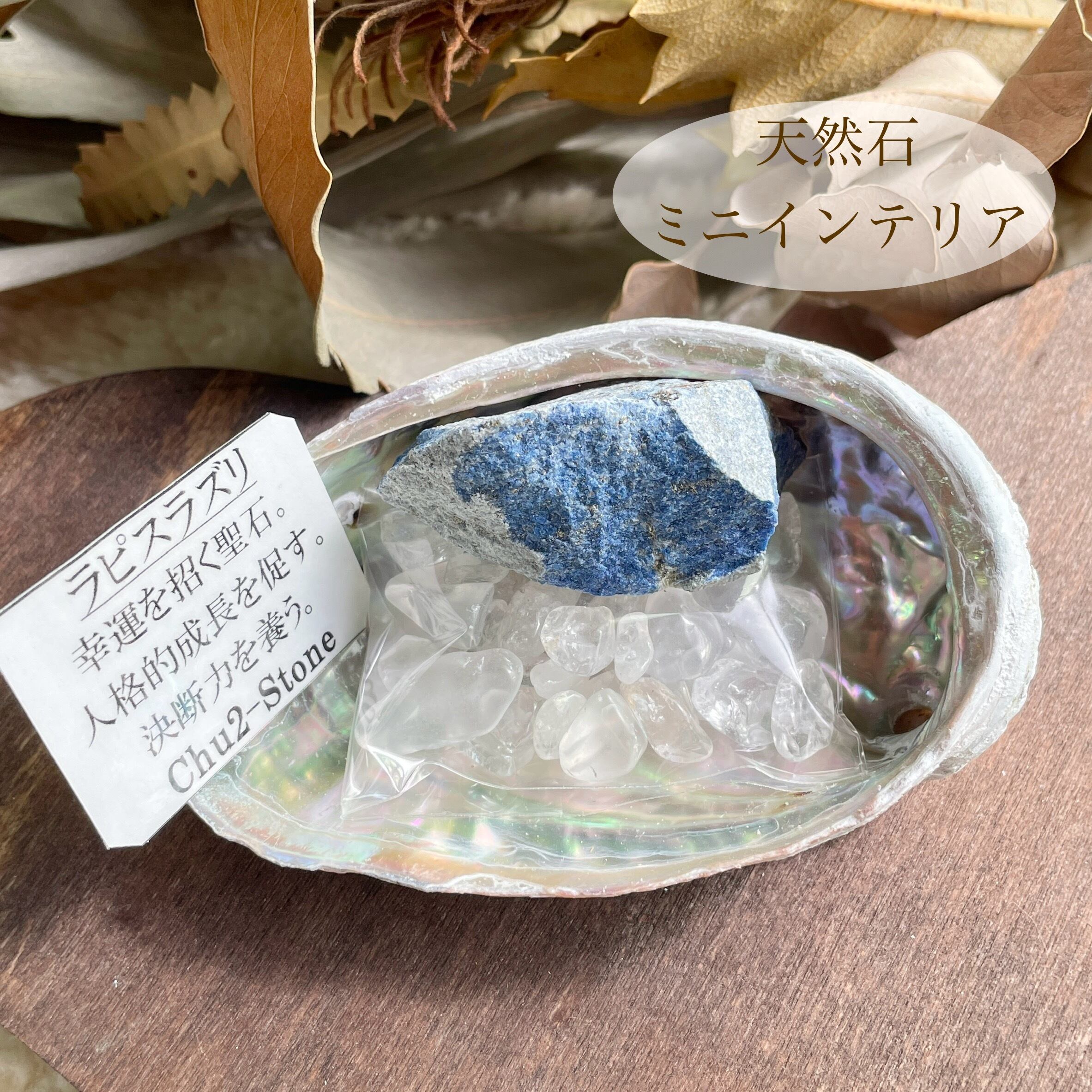 【天然石インテリア】ラピスラズリ×アバロンシェル 意味カード&水晶のさざれ付き 浄化などにもオススメ T-28