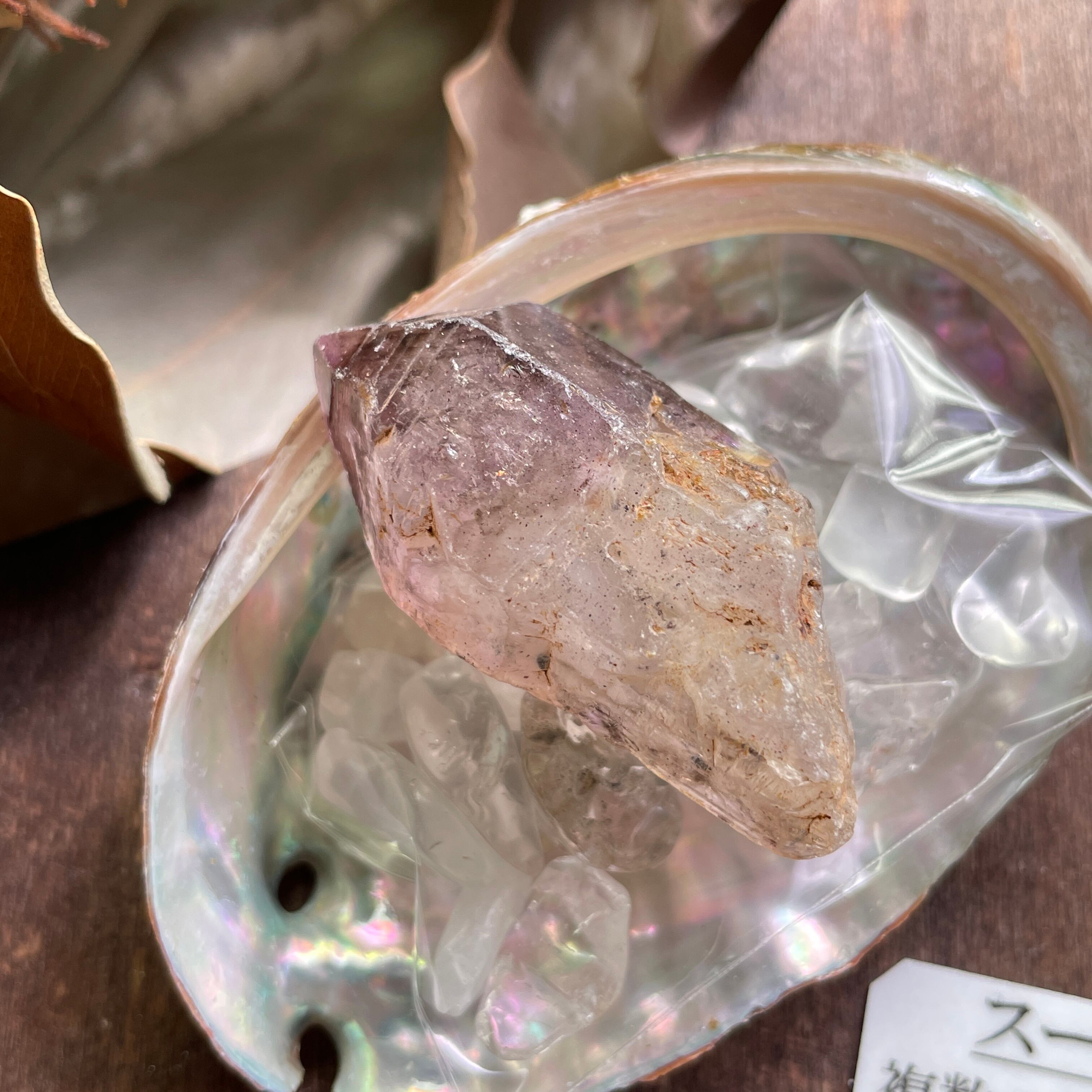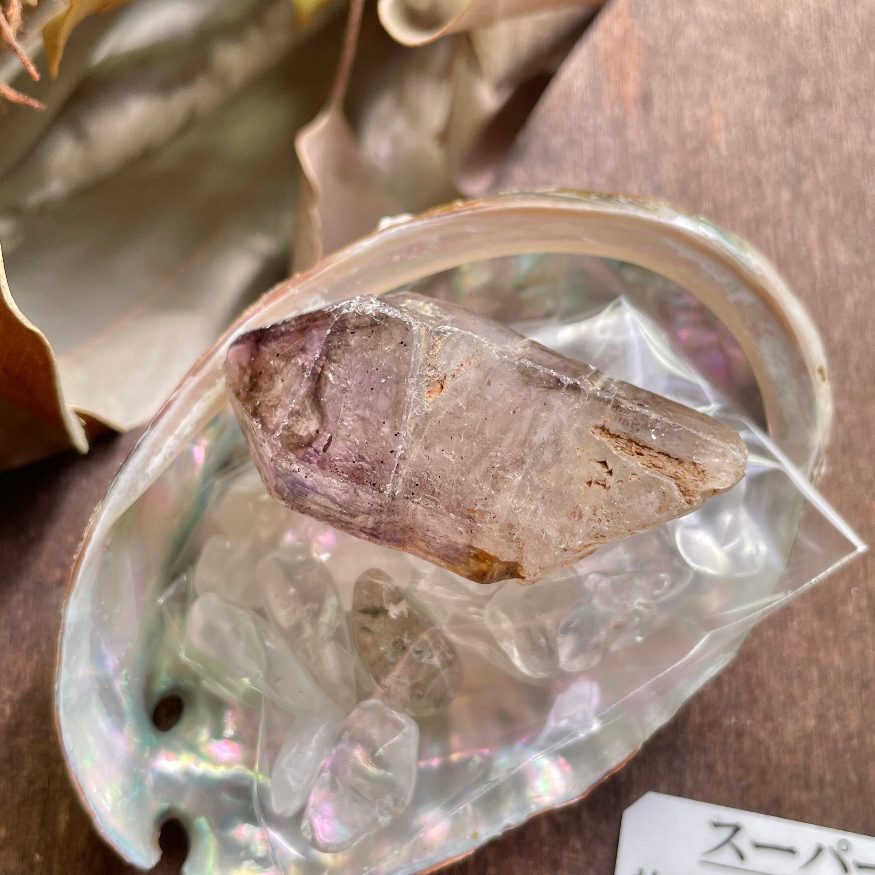 【天然石インテリア】スーパーセブン×アバロンシェル 意味カード&水晶のさざれ付き 浄化などにもオススメ T-32