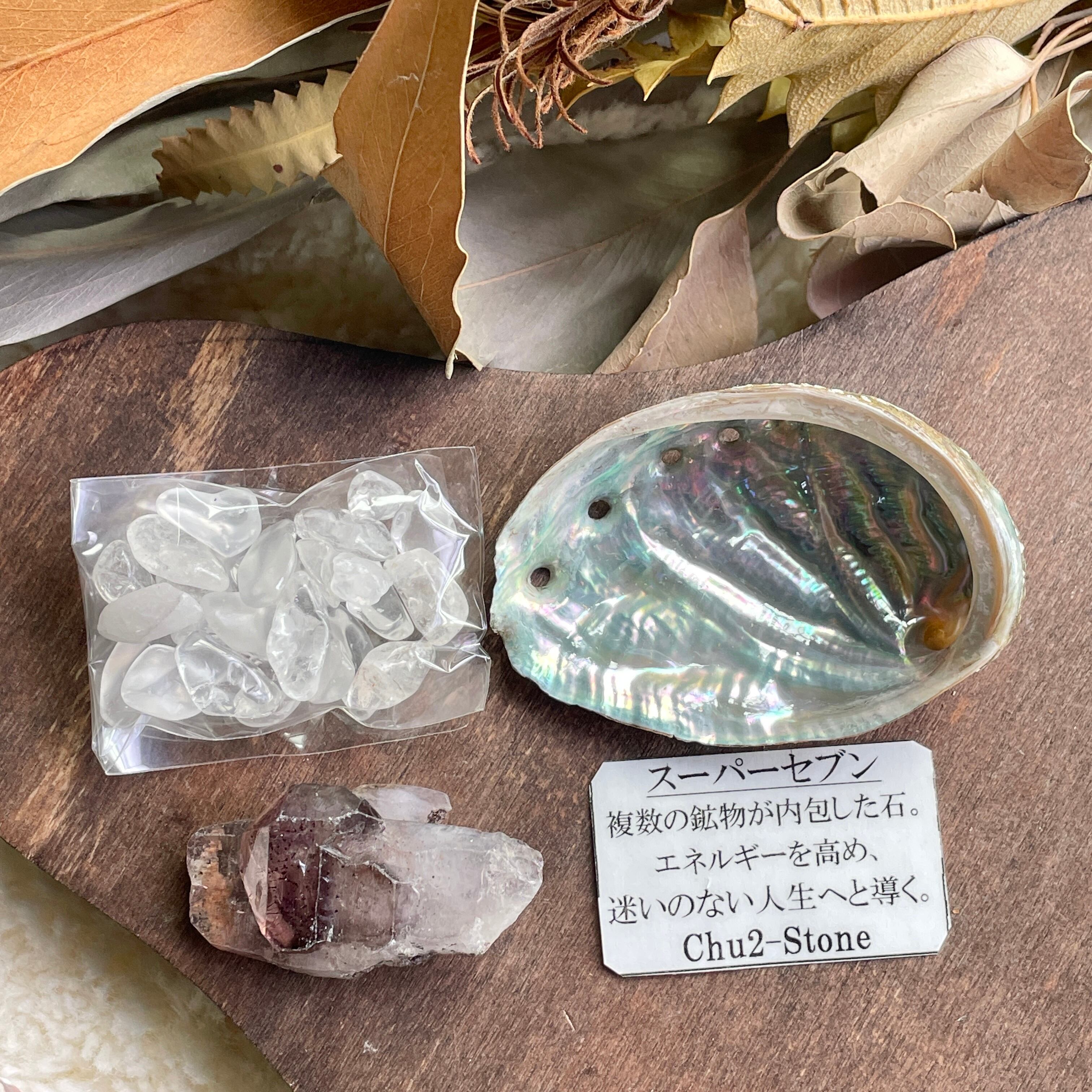 【天然石インテリア】スーパーセブン×アバロンシェル 意味カード&水晶のさざれ付き 浄化などにもオススメ T-33