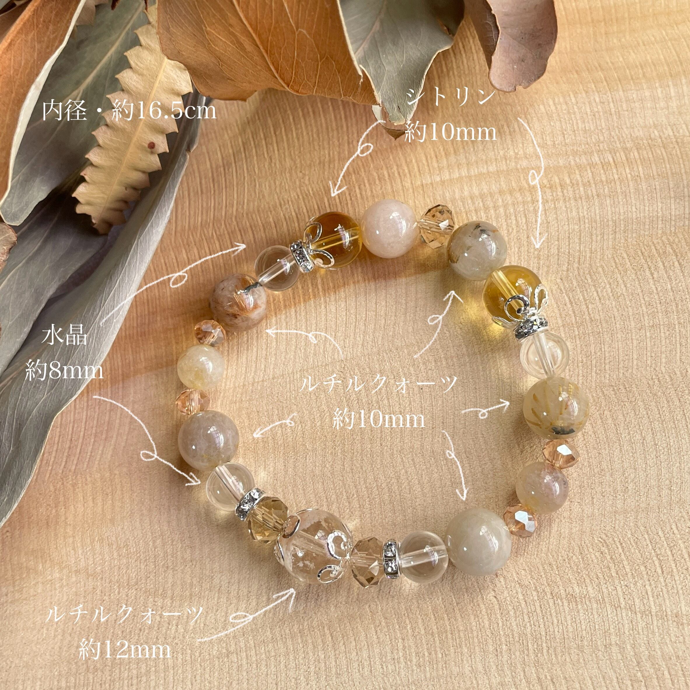 天然石デザインブレスレット ルチルクォーツ×シトリン×水晶 1点もの 14