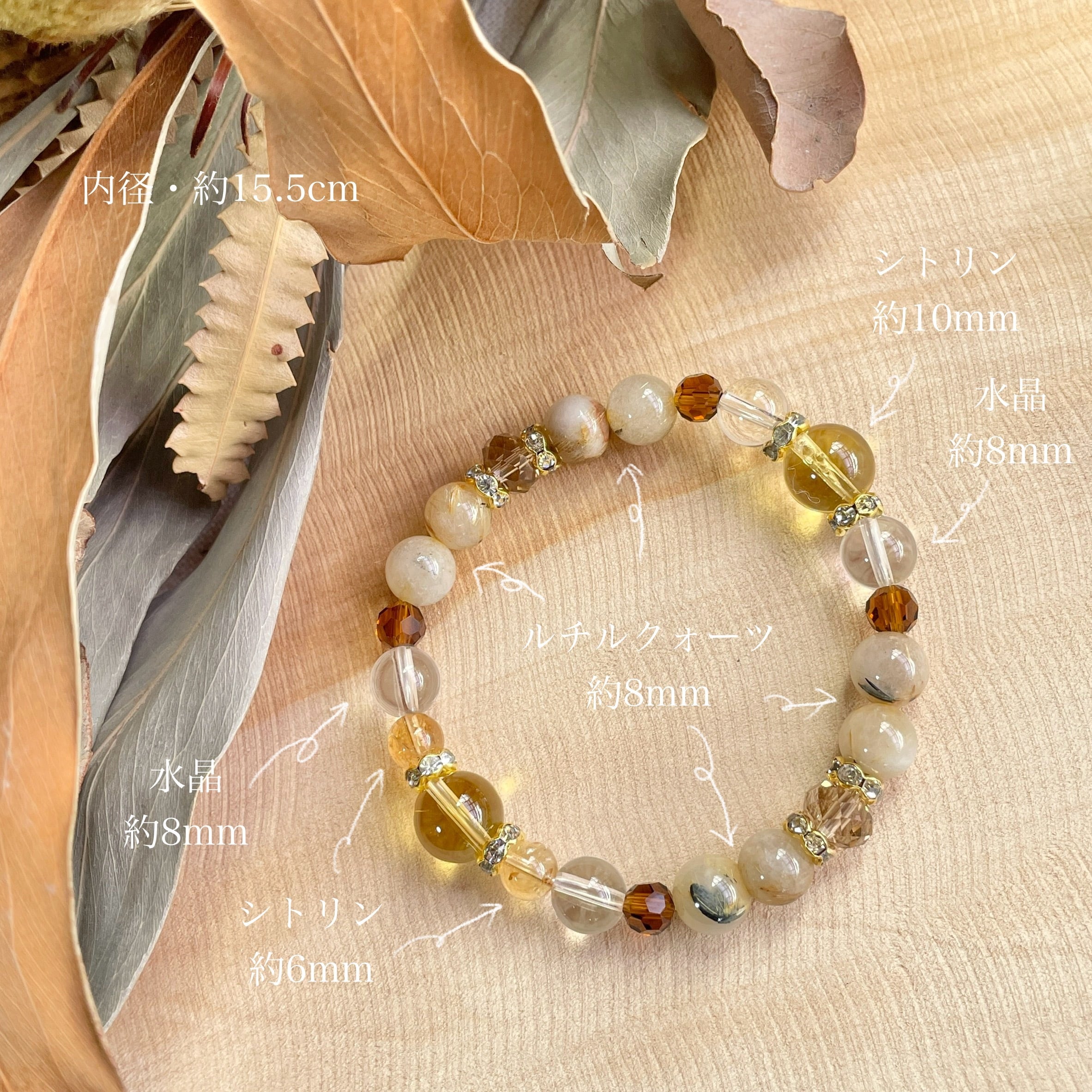 天然石デザインブレスレット ルチルクォーツ×シトリン×水晶 1点もの 18