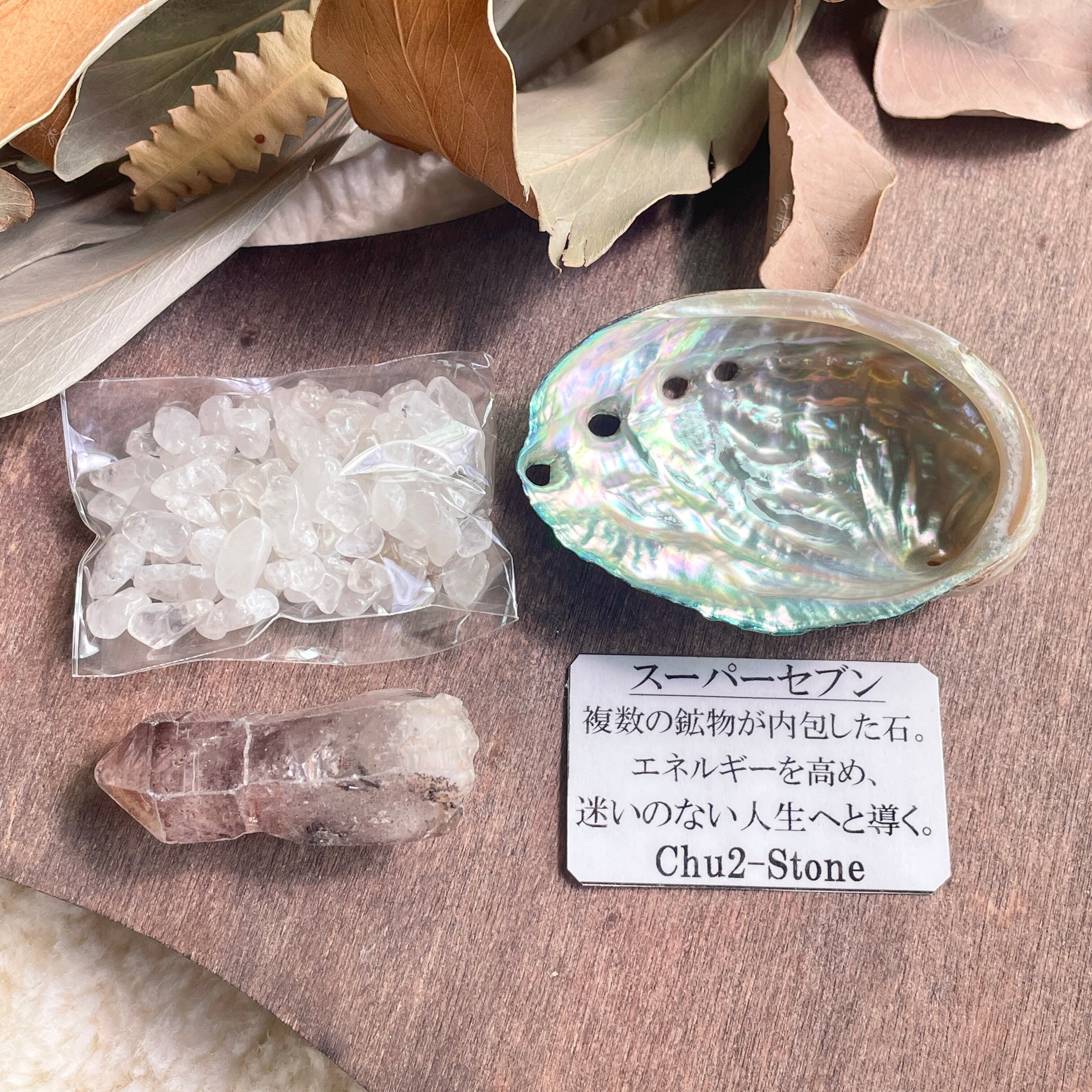 【天然石インテリア】スーパーセブン×アバロンシェル 意味カード&水晶のさざれ付き 浄化などにもオススメ T-34