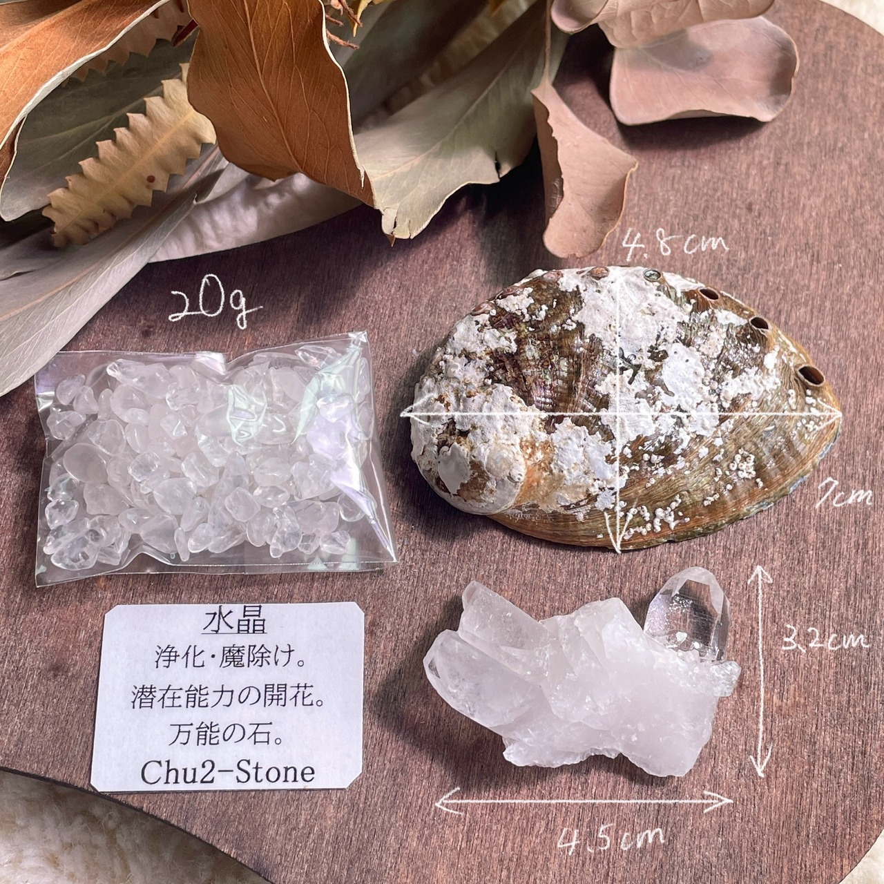 【天然石インテリア】水晶×アバロンシェル 意味カード&水晶のさざれ付き 浄化などにもオススメ T-38