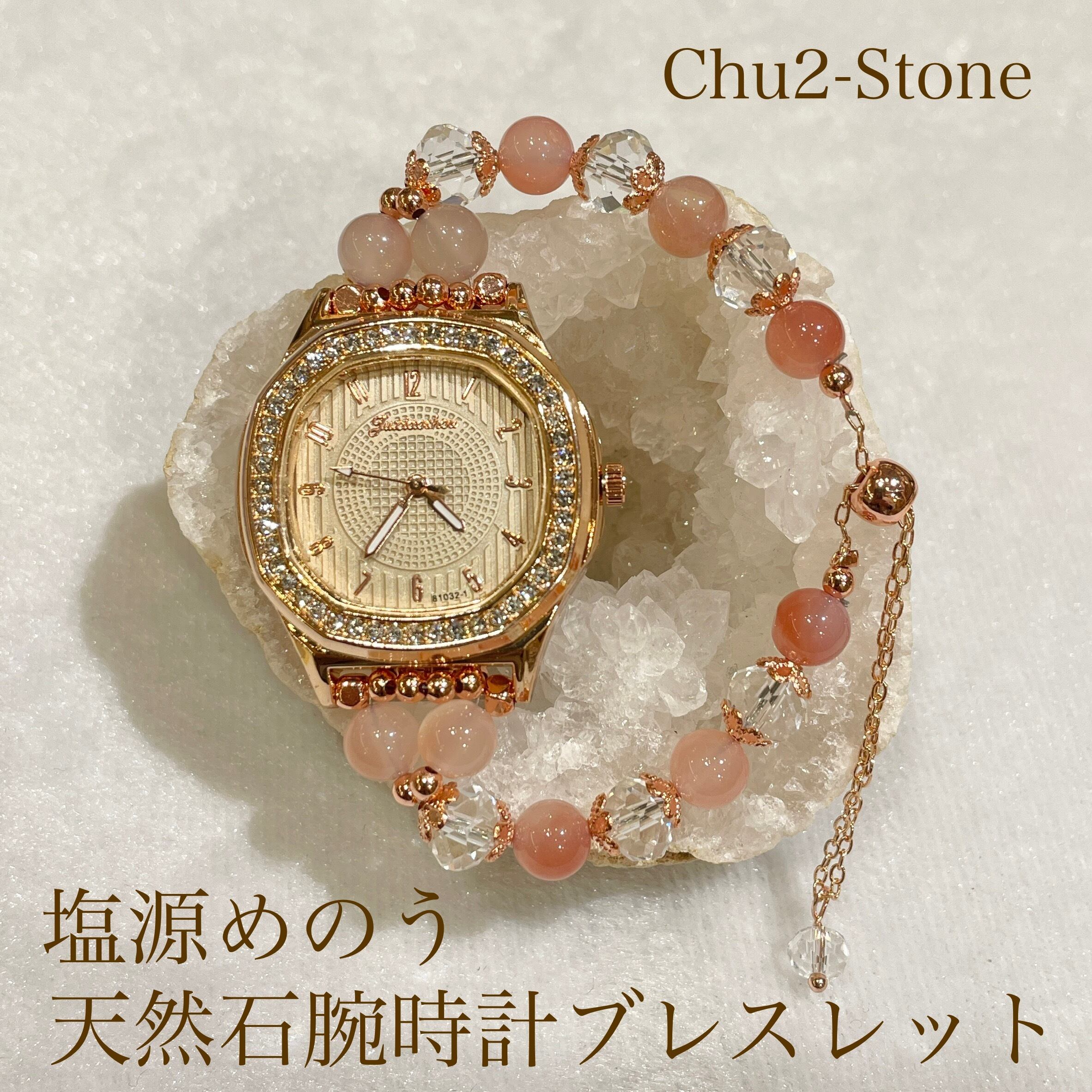 天然石と腕時計を組み合わせた華やかなブレスレット。