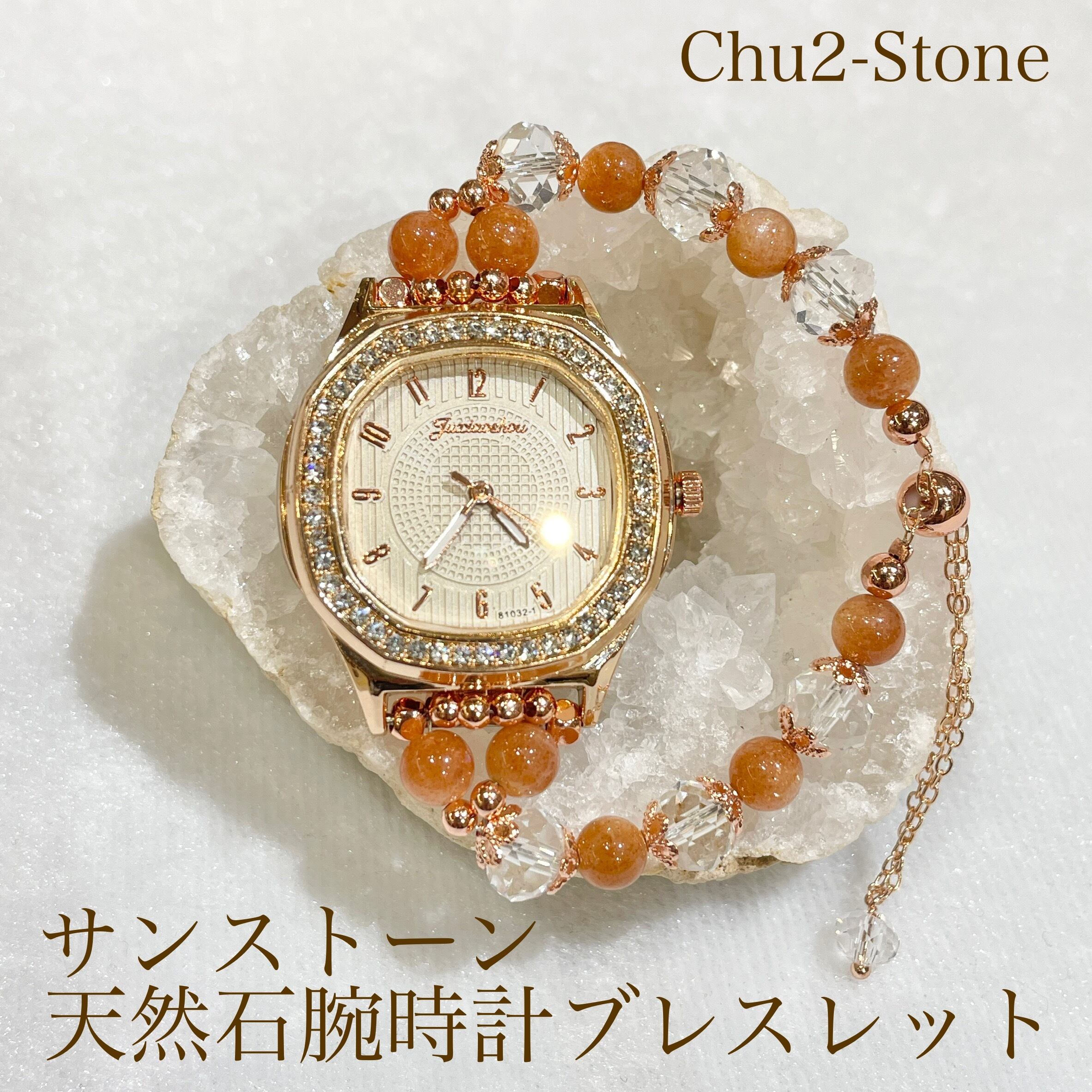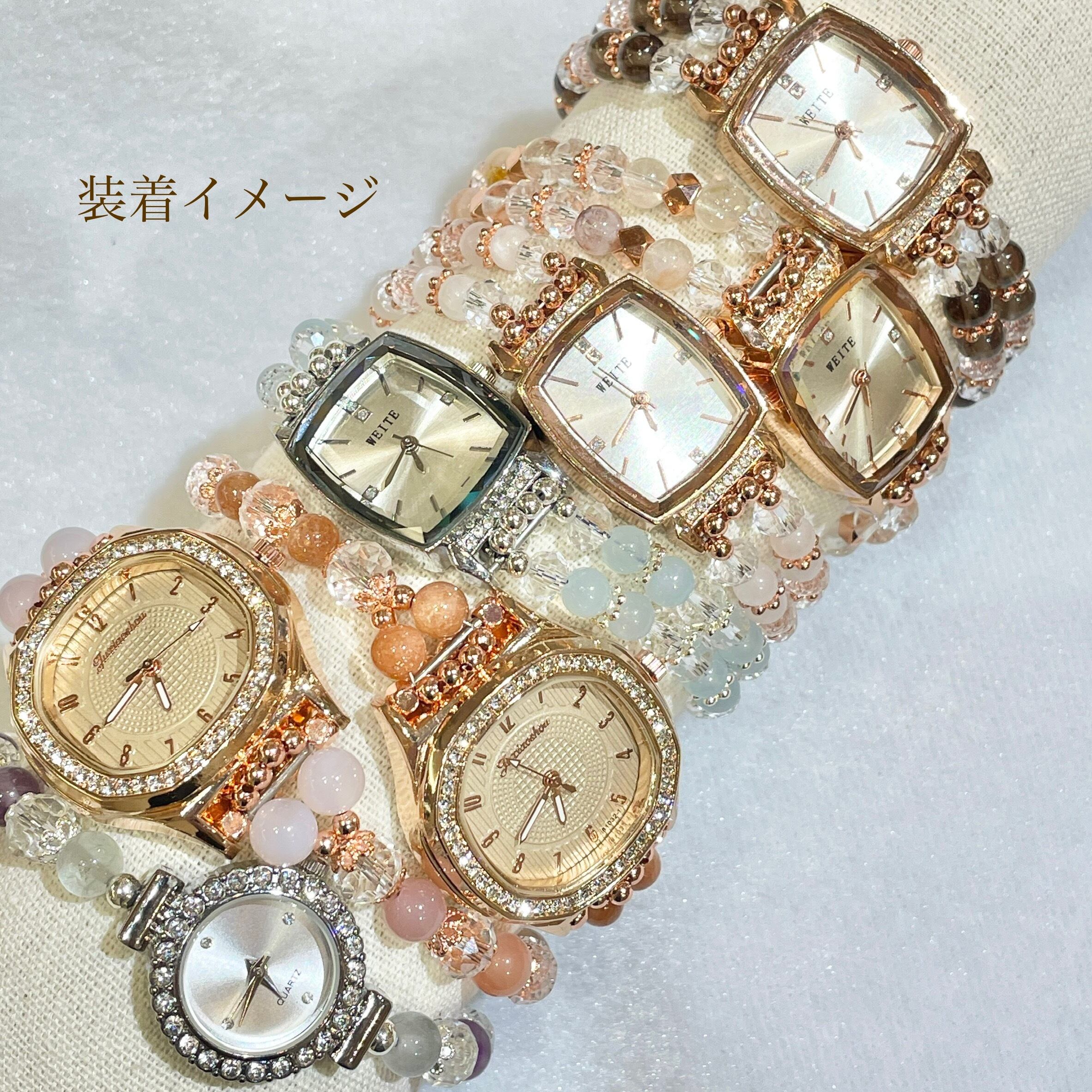 天然石と腕時計を組み合わせた華やかなブレスレット。