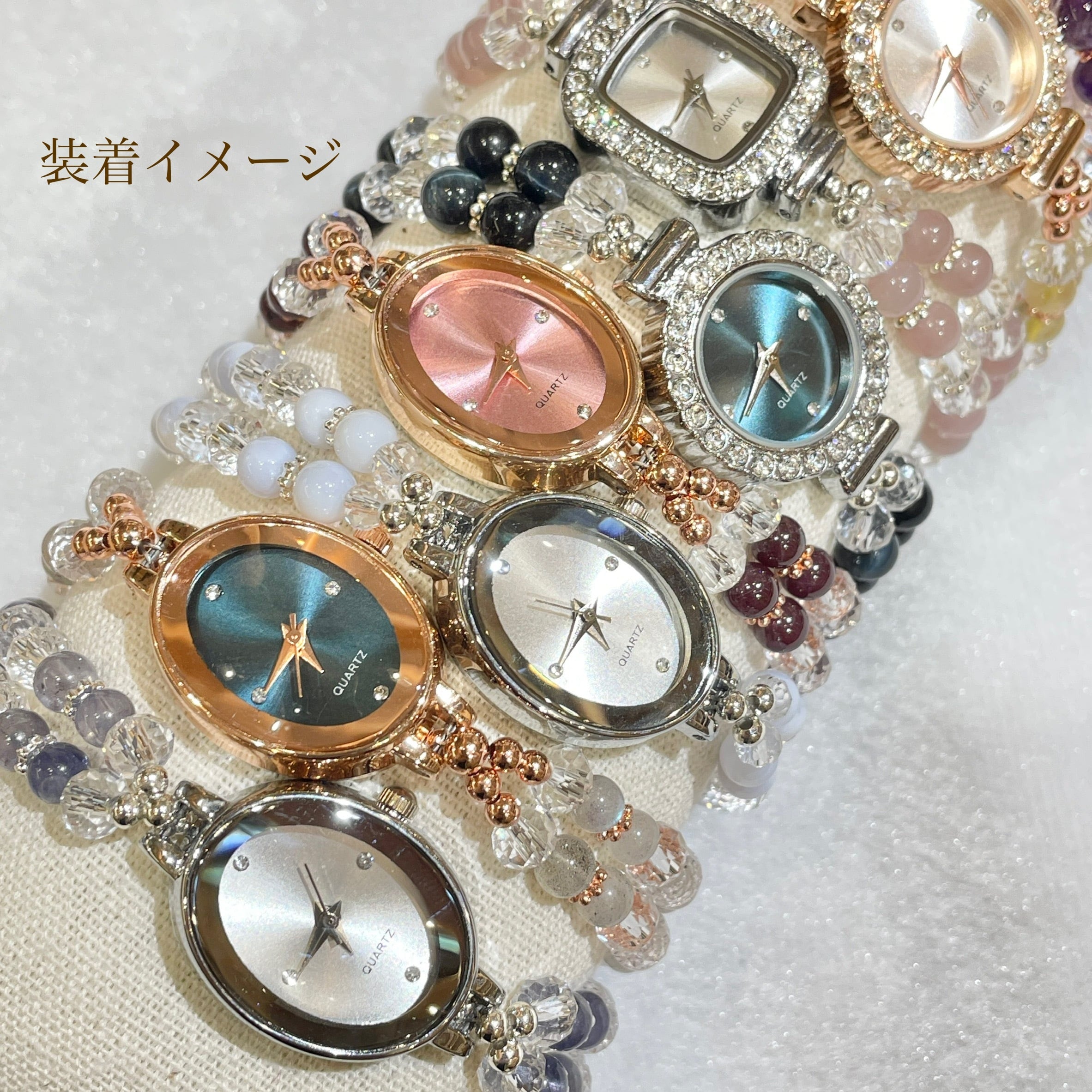 天然石と腕時計を組み合わせた華やかなブレスレット。